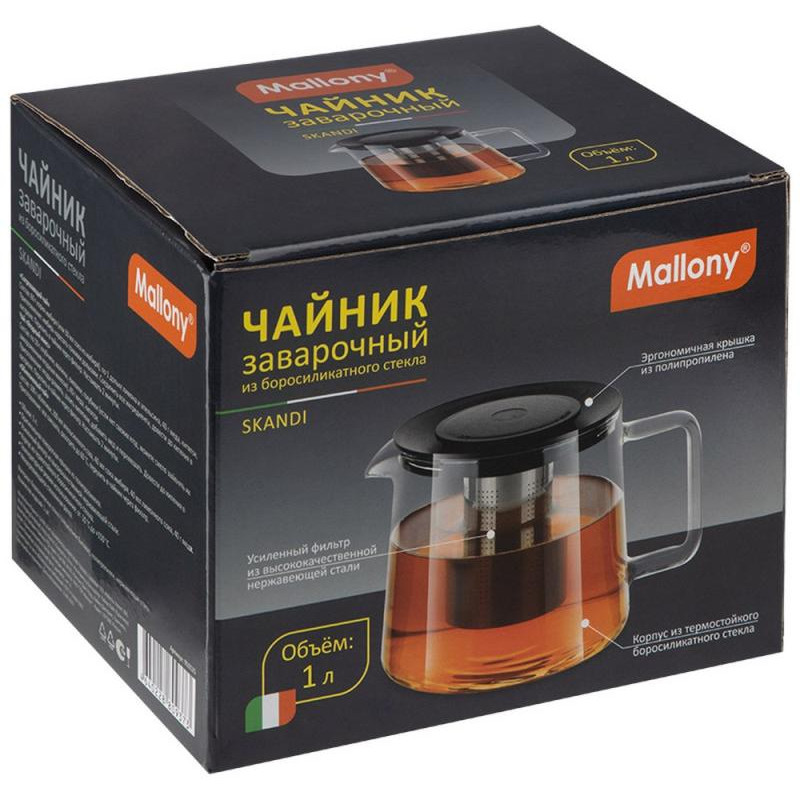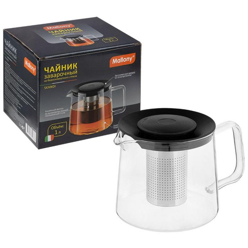 Чайник заварочный Skandi 1000мл из боросиликатного стекла, с прямоугольной ручкой MALLONY 910125