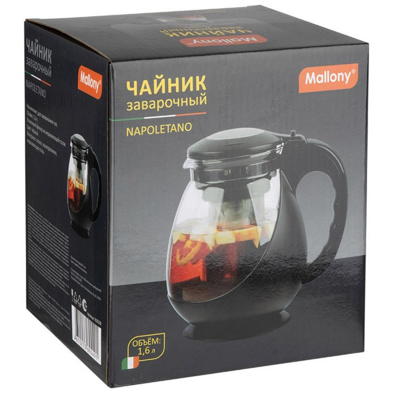 Чайник заварочный Napoletano 1600мл стеклянный в корпусе из полипропилена MALLONY 910128