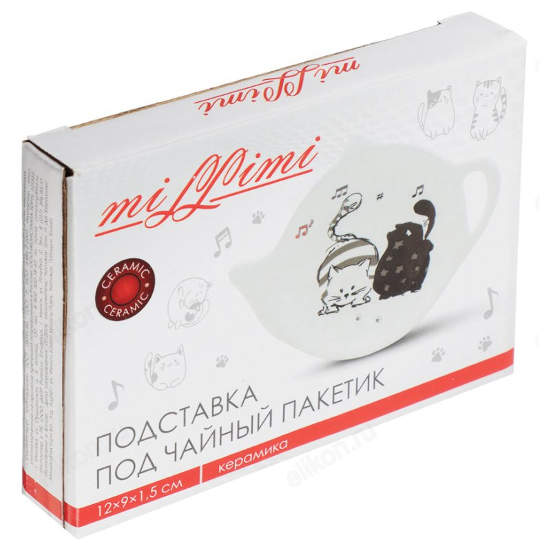 Подставка под чайный пакетик MILLIMI Хвостатые друзья — милый и практичный аксессуар, который украсит ваше чаепитие. Выполненная из качественной керамики, она имеет форму чайника и выполнена в белом цвете, что придаёт ей особое очарование. Размеры 12х9х1,5 см идеально подходят для размещения чайных пакетиков, а нежные изображения котов добавляют игривости и уюта. Оригинальная подставка станет замечательным дополнением к вашей чайной коллекции и украсит каждый момент отдыха с чашкой любимого напитка.