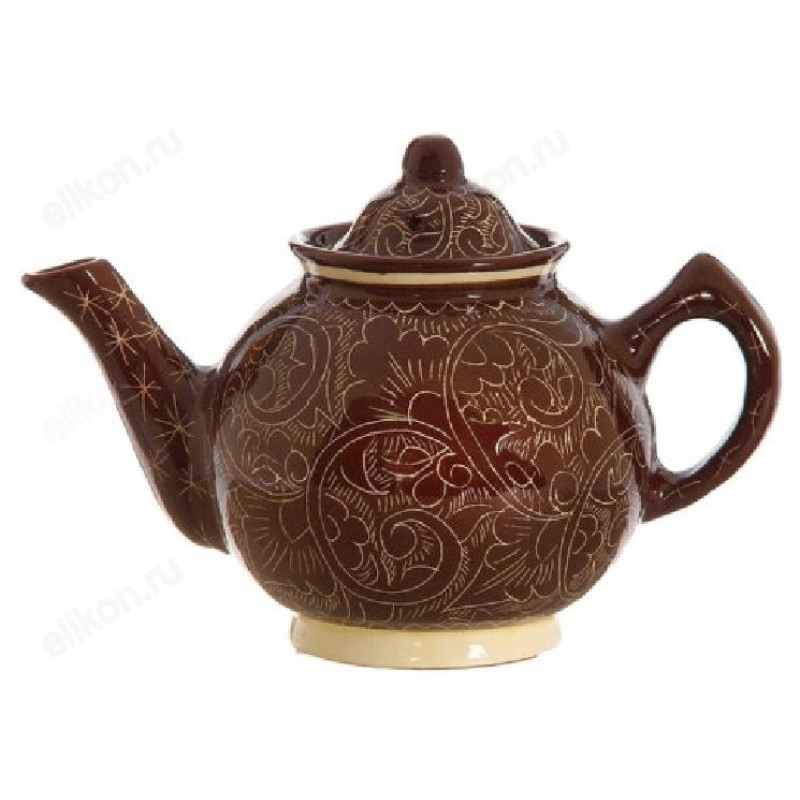 Чайник заварочный керамика 1л Коричневый орнамент