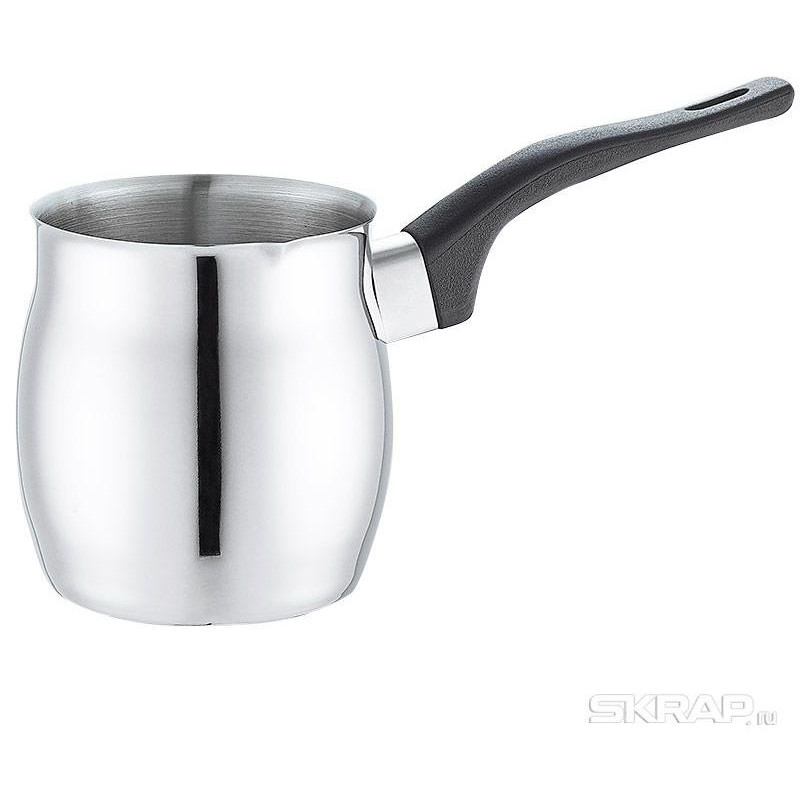 600мл, турка, сталь, ручка-бакелит, толщина металла 0.5мм, дно-однослойное, подходит для индукции