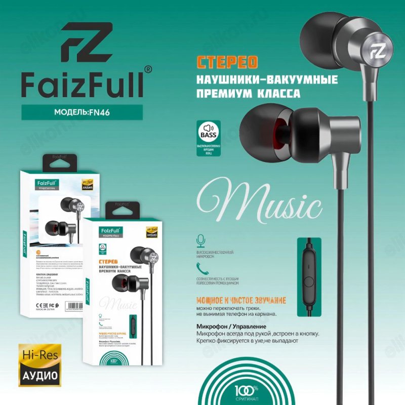 Гарнитура проводная вкладыши FaizFull FN46