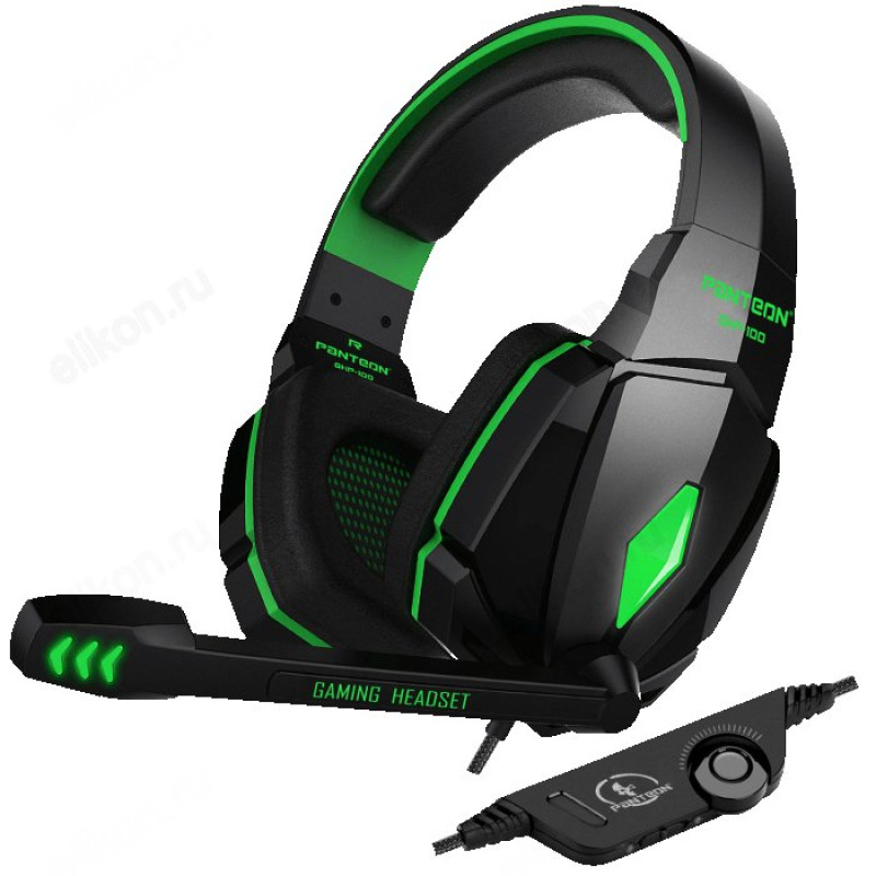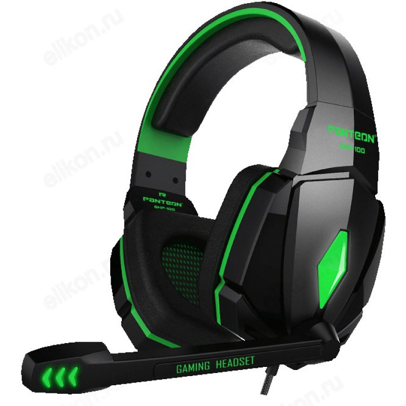 Проводные наушники Panteon GHP-100, черный/зеленый