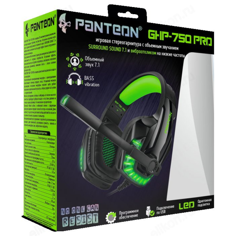Проводные наушники Panteon GHP-750 PRO черный/зеленый