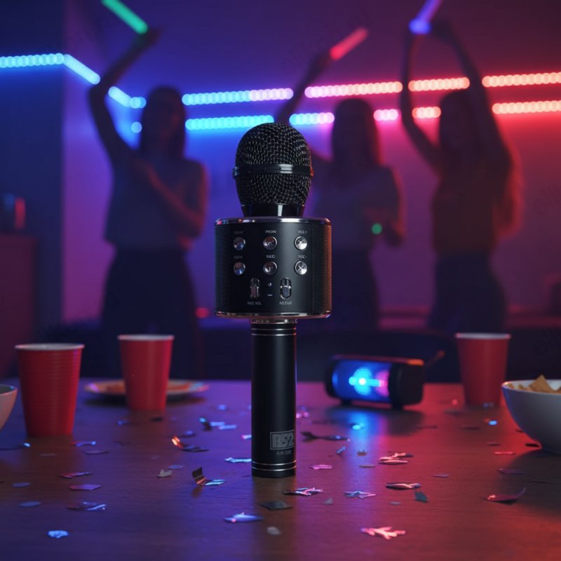 Мощность караоке-микрофона составляет 3 Вт, максимальная громкость достигает 115 дБ, а потребляемая мощность не превышает 8 Вт.
