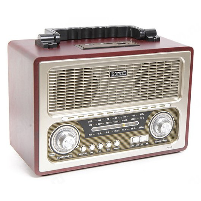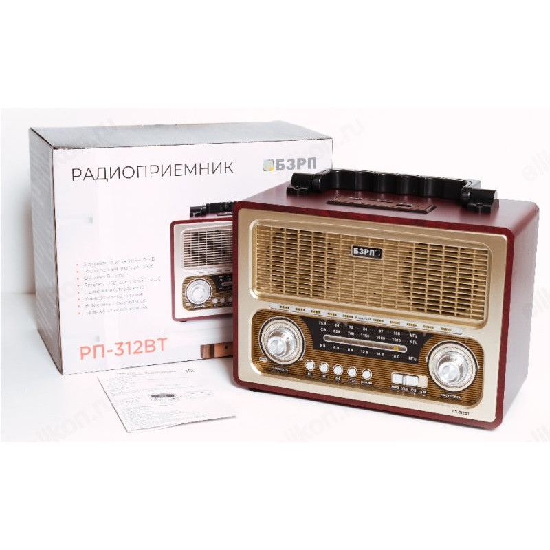 Высокое качество приятно удивит покупателей. Подойдет под любой интерьер, благодаря своему дизайну. Находясь на витрине, привлекает внимание покупателей. Радиоприемник обеспечит уверенный прием сигнала в нескольких диапазонах, а именно: КВ, УКВ и СВ. Радиоприемник БЗРП РП-312 имеет 2 динамика с мощностью 3Вт.