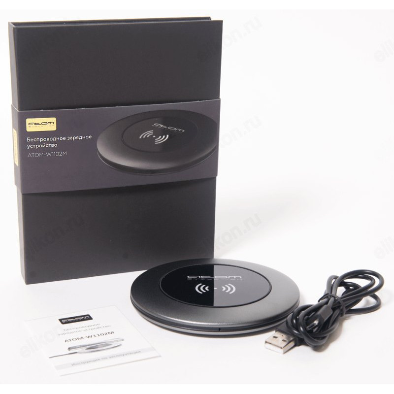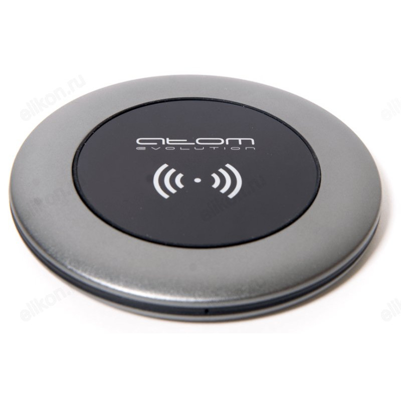 Зарядка беспроводная ATOM-W1102M, 10Вт, круг, пластик, Атом,серый