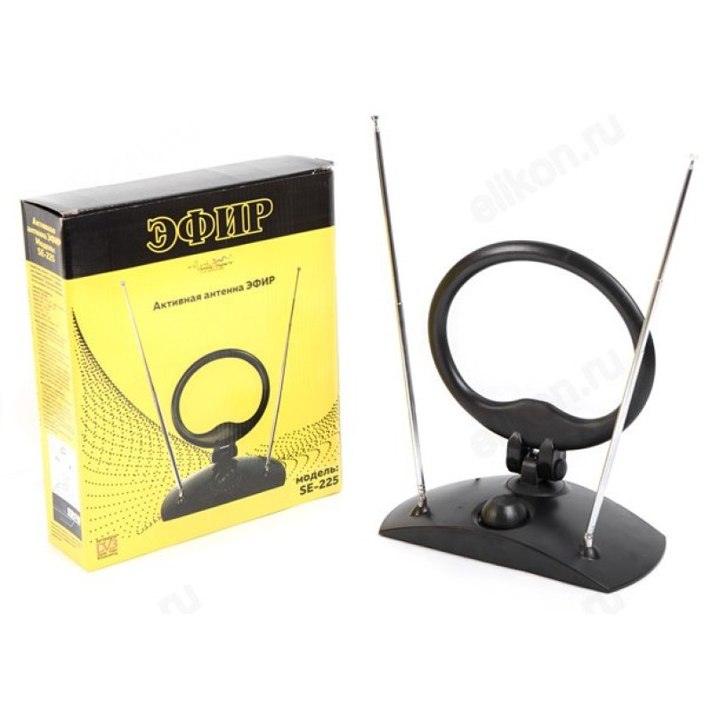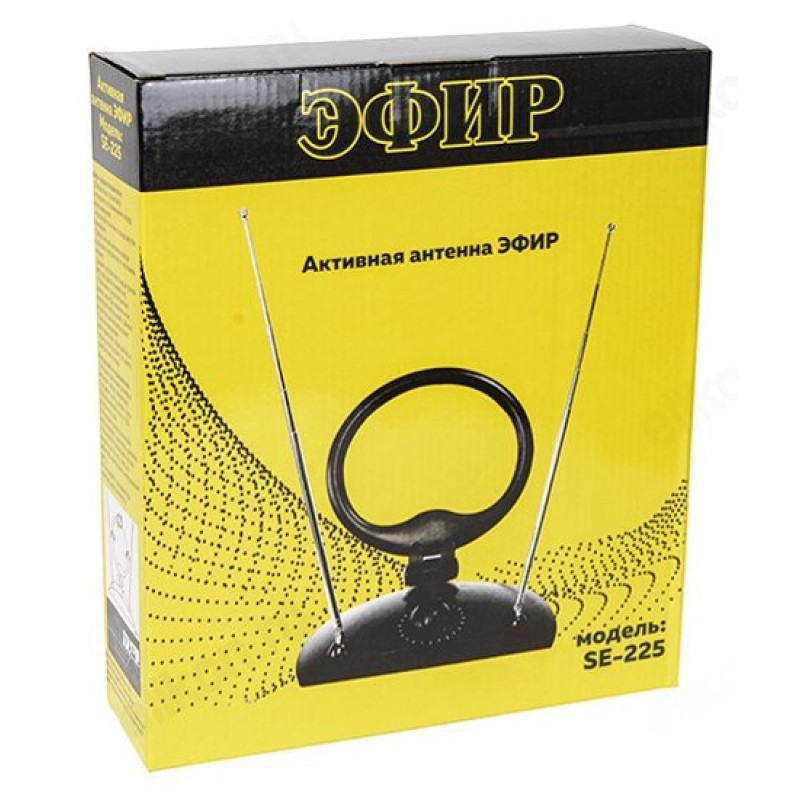 В комплектацию входит: антенна «Эфир» SE-225, гарантийный талон, внешний блок питания, красочная упаковка.