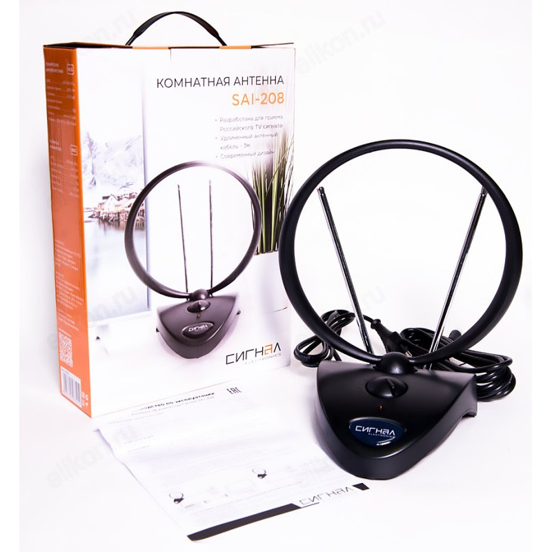 Антенна комнатная DVB-T2 и ДМВ+МВ активная Сигнал SAI-208