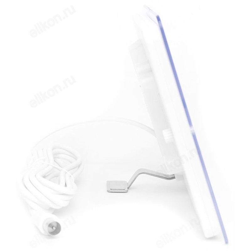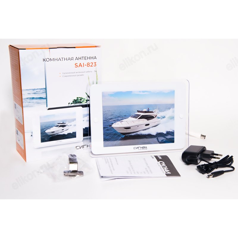 Телевизионная комнатная антенна «Сигнал» SAI-823 для просмотра цифрового и аналогового телевидения выполнена из пластика белого цвета. Антенна выполнена в необычном дизайне, как фоторамка. В неё можно вставить любую фотографию! Такой подход, несомненно, привлечет покупателей. Принимает сигнал в диапазонах МВ и ДМВ, FM. Частота приема сигнала МВ(87,5-230)МГц, ДМВ (470-862)МГц. Антенна по типу усиления активная. Имеет встроенный усилитель, поэтому обладает отличным приемом сигнала, как в горизонтальной, так и в вертикальной плоскости. Коэффициент усиления составляет 28db. Выходное полное сопротивление составляет 75 Ом. Питание от блока питания 6V/100mA, длина кабеля составляет 3м, размер антенны 215x155x75мм., вес не более 650гр.