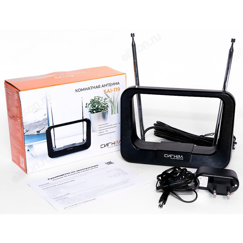 Антенна комнатная DVB-T2 и ДМВ+МВ активная Сигнал SAI-119