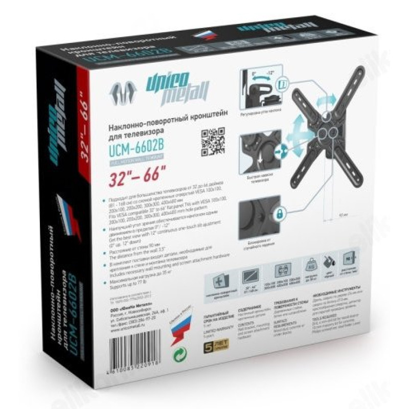Наклонно-поворотный кронштейн для крепления телевизора на стену UCM-6602B идеально подойдет вам, если имеется желание или необходимость смотреть телевизор из любой точки комнаты!