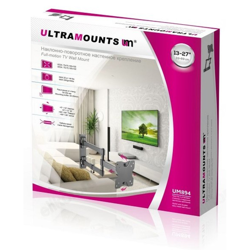 Кронштейн ULTRAMOUNTS UM 894 работает с креплениями VESA MIS-D типоразмеров 75х75 и 100х100.