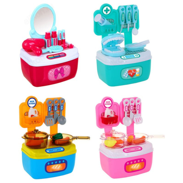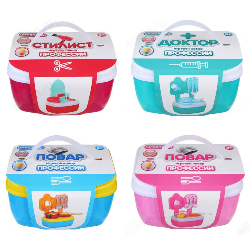 Ребенок хочет попробовать себя в роли повара, врача, а может быть, стилиста? Подарите ему Игровой набор Профессии от Игроленд. Набор Мини собирается в компактный чемодан и содержит 18 тематических предметов. Все элементы выполнены из высокопрочного ABS-пластика. Игровая мастерская поможет ребенку познакомиться с профессиями и обрести новые интересы. Прекрасный и полезный подарок для мальчиков и девочек.