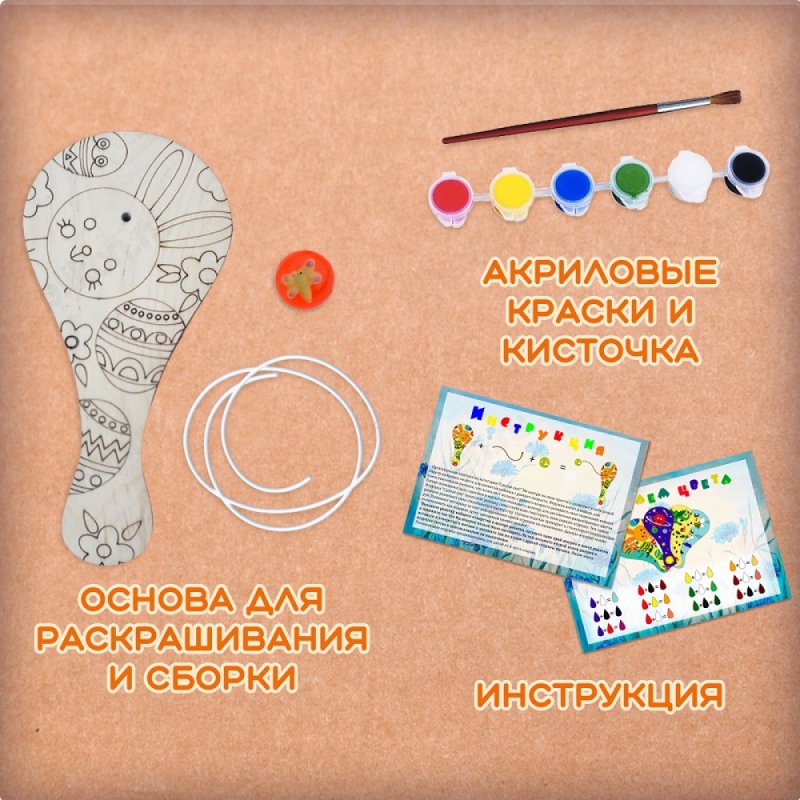 Великолепный набор для творчества 3 в 1! Поделка - раскраска - игрушка! Данный набор для рисования - это замечательный подарок для ребенка, сочетающий оригинальность и функциональность! Сделав такую поделку из дерева своими руками, ребенок получит уникальный подарок для друга или развивающую игрушку для себя. Внутри набора деревянная заготовка для поделки, шнур, акриловые краски и кисточка, инструкция по смешиванию цветов и сборке. Ваш подрастающий человечек обязательно оценит такой креативный подарок. Ведь поделки для детей лучше всего увлекают и развивают творческое мышление. А наш набор для поделок позволит ему научиться основам смешивания цветов, самостоятельному творчеству в изготовлении игрушки и развитию моторики рук при использовании игрушки по назначению. Набор для росписи упакован в стильную крафтовую коробку, которую приятно держать в руках и не стыдно дарить. Лучший подарок мальчику и девочке от 4 лет.