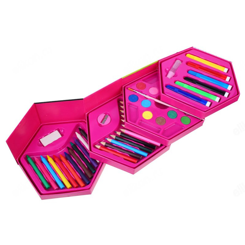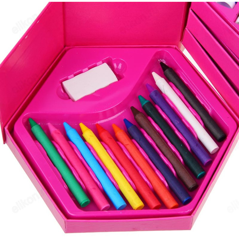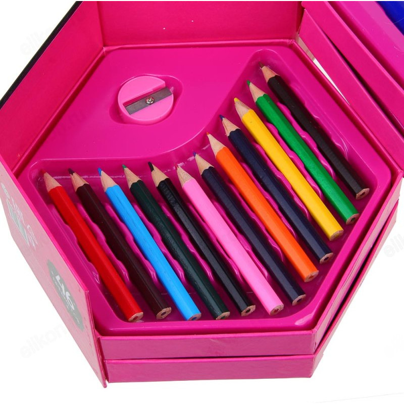 Удобный набор для творчества, все, что нужно, в одном месте! Набор состоит из: 6 фломастеров, 12 цветных карандашей, 12 восковых мелков, точилка, ластик, кисточка, набор красок. Можно брать с собой в поездки и не переживать, что что-то потеряется - у каждого предмета свое индивидуальное место.