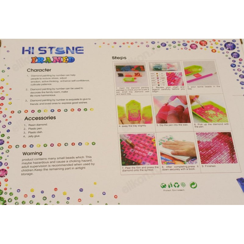 В набор входят: холст с цветной схемой и клеевым слоем, стилус, лоток для страз, комплект страз. Это удивительно просто и завораживающе красиво. Для создания шедевра не нужно никаких художественных навыков и дополнительных покупок.