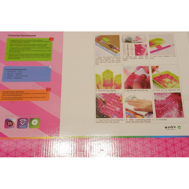 В набор входят: холст с цветной схемой и клеевым слоем, стилус, лоток для страз, комплект страз. Это удивительно просто и завораживающе красиво. Для создания шедевра не нужно никаких художественных навыков и дополнительных покупок.