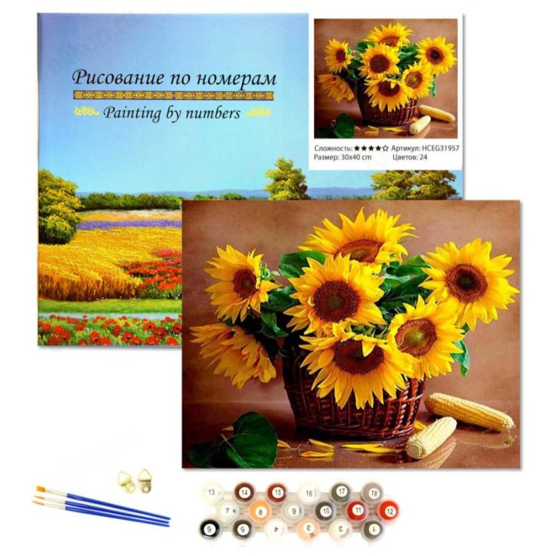 Набор для творчества "Рисование по номерам" — замечательная возможность развить свои художественные навыки и получить удовольствие от создания собственного произведения искусства. В комплект входит оригинальная картина по номерам, напечатанная на холсте и натянутая на прочный подрамник, что гарантирует удобство и долговечность в использовании. Ваша работа с изображением ярких подсолнухов на холсте станет настоящей гордостью, когда вы увидите конечный результат.