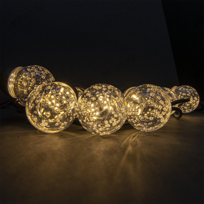 Создайте праздничное настроение с помощью электрической гирлянды в виде лампочек с теплым светом! Подключив её к электросети, вы сможете наслаждаться ярким освещением как в доме, так и на улице даже в вечернее время.