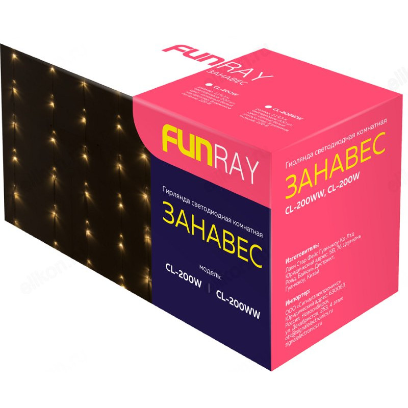 Гирлянда светодиодная Занавес CL-200WW, 2,1*1,5м, 200LED,тепл.белый, прозр. шн. 1,5м,220в, IP20, Fun