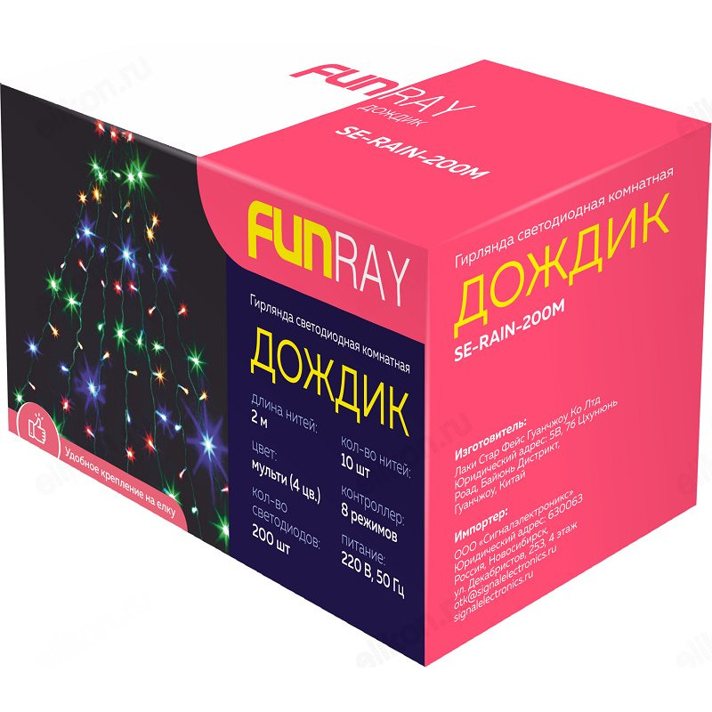 Гирлянда светодиодная Дождик SE-RAIN-200M, 10н по 2м, 200LED, мульти(4цв.), конт