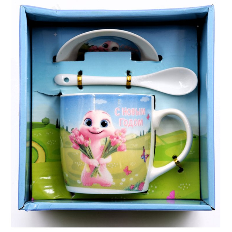 Керамическая кружка объемом 300 мл с блюдцем и ложкой идеально подходит для чая или кофе, делая каждое утро или вечер незабываемыми.