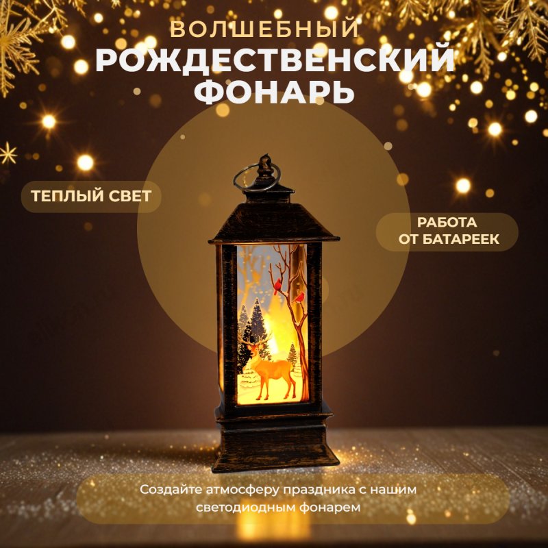 Фонарь станет отличным подарком для мамы на день рождения или для бабушки, папы, подруги и коллеги на Новый год 2025. Он прекрасно подходит в качестве сувенира на Рождество или подарка к Новому году. Светодиодные элементы внутри создадут атмосферу волшебства в любой зимний вечер. Этот аксессуар отлично дополнит новогодние настольные украшения или украсит елку.