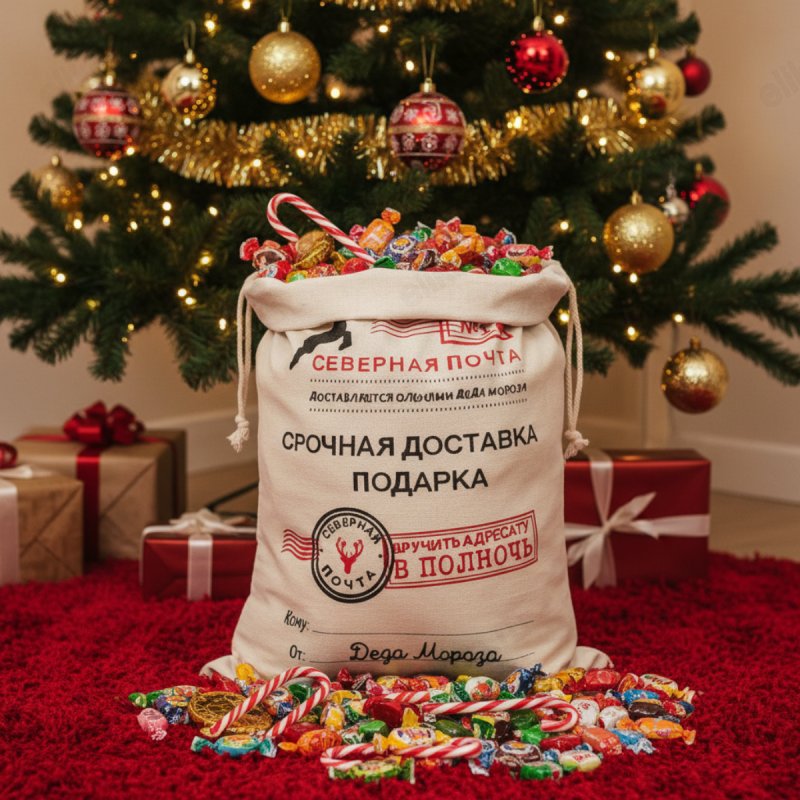 Мешок — это идеальное украшение для Нового года и упаковка для подарков. Этот мешочек отлично подойдет для упаковки подарков, конфет, сладостей и других мелочей, которые вы планируете подарить своим близким и друзьям в наступающем году. Он изготовлен из качественной ткани, которая надежно сохраняет форму и обеспечивает безопасное хранение подарков. Мешок просторный и вместительный, что позволяет упаковать в него множество товаров и сюрпризов для детей. Благодаря своему дизайну, мешок станет прекрасным элементом декора вашего дома в новогодние праздники.