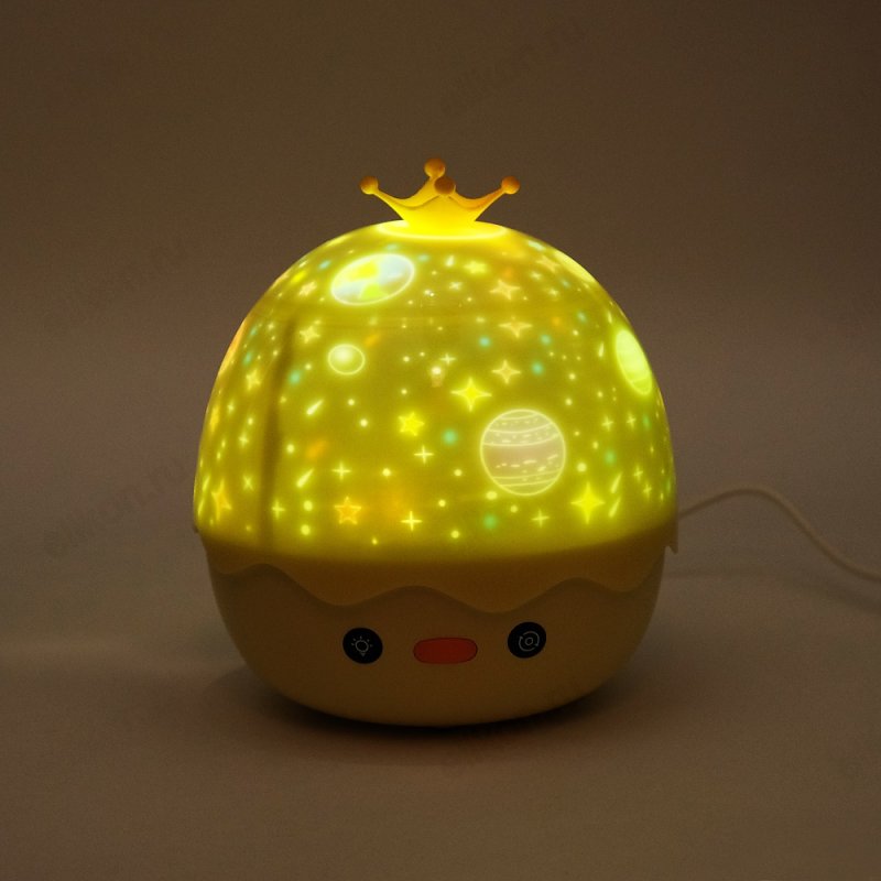 Это настоящее детское счастье! Комнатная светодиодная система в виде утенка «HAPPY DUCK» станет прекрасным дополнением детской комнаты. Как только вы её включите, начнётся настоящее волшебство. В комплект входят 6 сменных вкладышей с проекциями: «С Новым годом», «Любовь», «Планеты», «С днем рождения», «Звёздное небо» и «Подводный мир». Устройство предлагает 3 варианта освещения: теплый белый, холодный белый и синий. Благодаря компактным размерам, его легко разместить на любой поверхности. Работает от сети. «HAPPY DUCK» — отличный подарок в любое время года!