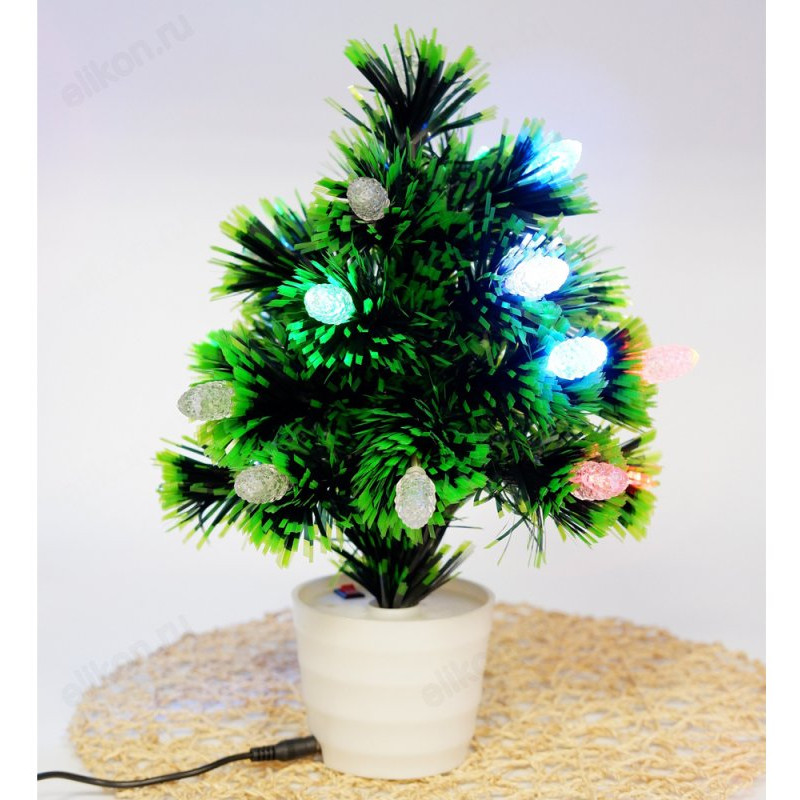 Сувенирная елочка — замечательный способ создать новогоднее настроение в вашем доме или офисе. Эта мини-елка станет незаменимым и любимым украшением для стола, которое захочется разместить в каждой комнате. Искусственная елка — отличный выбор для тех, кто хочет заботиться о природе, не отказываясь от праздничной атмосферы. Она не требует особого ухода и может использоваться многократно. Достаточно периодически протирать ее от пыли и следить за ее состоянием. Елочка подключается к сети и оснащена подсветкой в виде шишек.