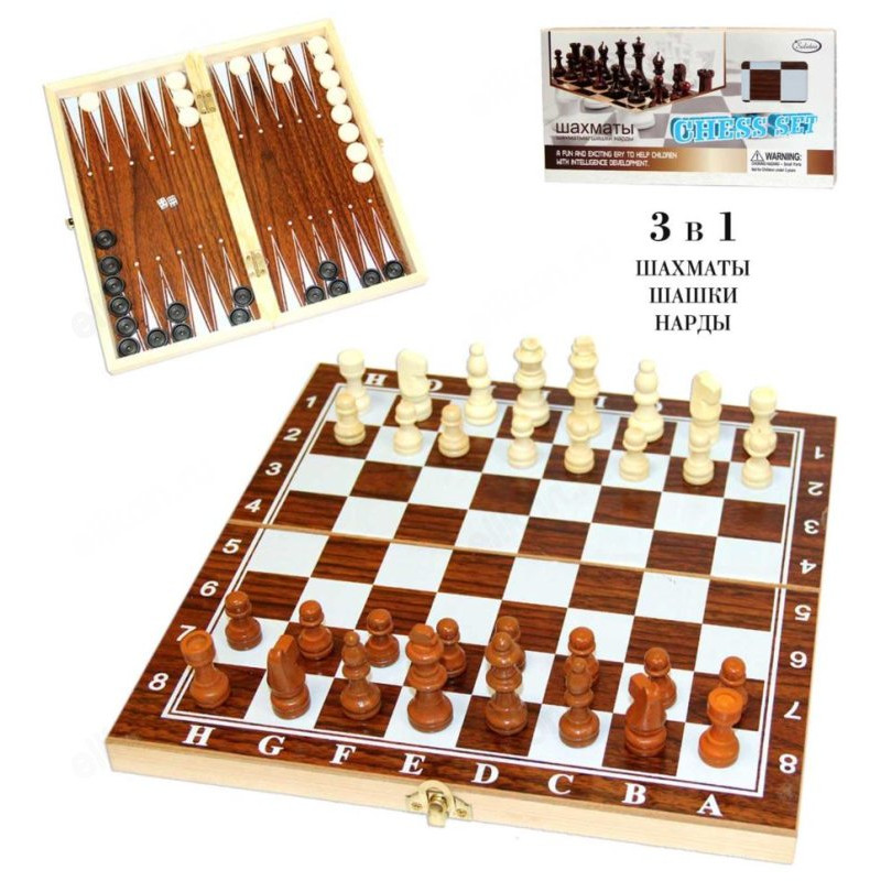 Классическая настольная игра 3 в 1: шахматы, шашки, нарды, размер доски 25*25 см.