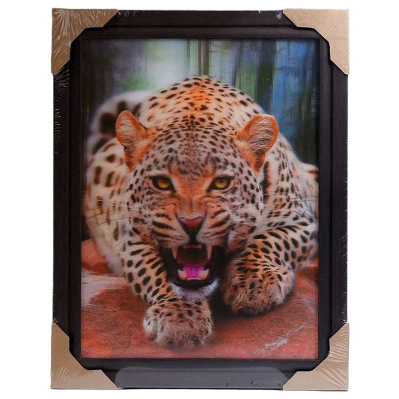 Картина с изображением леопарда. Леопард рычит, демонстрируя свои зубы.