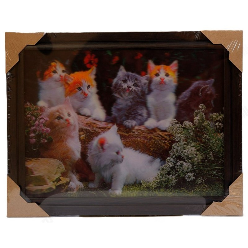 Картина с изображением семи котят непременно вызовет у вас улыбку. Объемность работы достигается благодаря высокой четкости, контрастности и дополнительному полимерному слою, который создает стереоскопический эффект. Это позволяет почувствовать глубину и погрузиться в атмосферу произведения. Уникальная игра переднего и заднего плана делает так, что объекты на картине меняются и словно движутся в зависимости от угла зрения, создавая эффект присутствия.