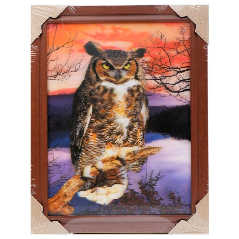 Картина с изображением серьезной совы прекрасно дополнит любой интерьер и станет его изысканным акцентом,