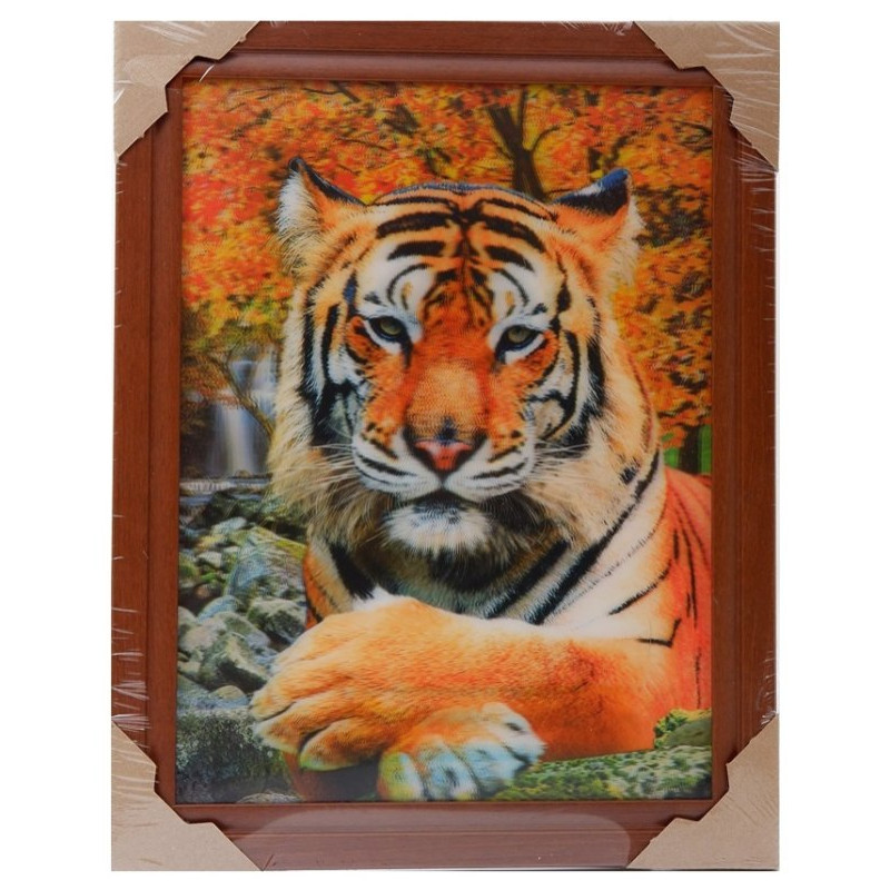 Картина с отдыхающим тигром, выполненная в ярких и теплых оттенках, прекрасно дополнит любой интерьер и станет изысканным акцентом в гостиной или спальне, придавая им уникальный шарм.