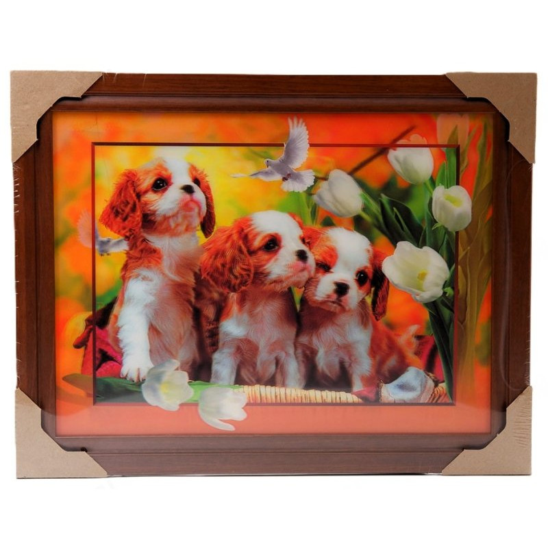 Игривые щенки, изображенные на картине, прекрасно дополнят любой интерьер
