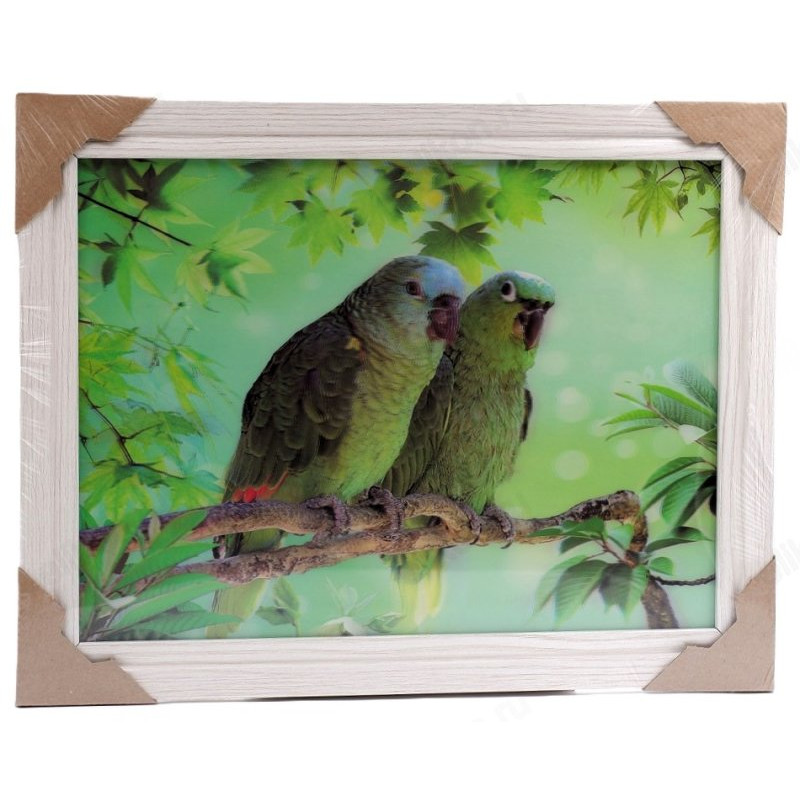 Картина с очаровательными зелеными попугайчиками станет прекрасным акцентом в любом интерьере,