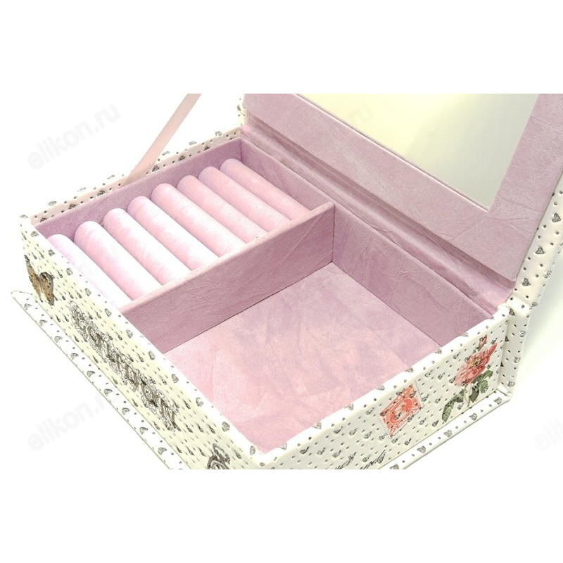Шкатулка для украшений выполнена из высококачественной экокожи. Внутри отделана мягкой бархатистой тканью.