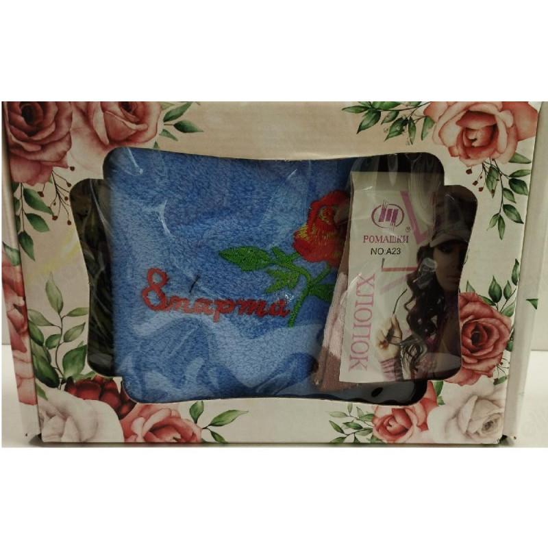 Набор подарочный 8 Марта 3в1 (платок, полотенце, носки) НП8-3