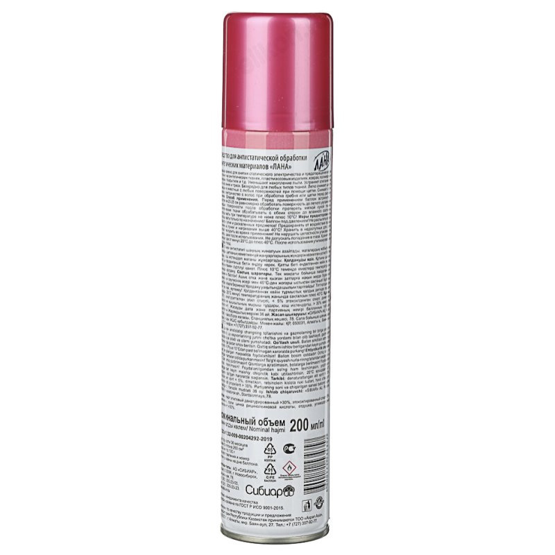 Антистатик ЛАНА не содержит токсичных или раздражающих кожу компонентов, при правильно использовании абсолютно безопасен для человека, не повреждает структуру ткани, не оставляет следов. Снимает статическое электричество, предотвращает осаждение пыли на ткань и твердые поверхности.