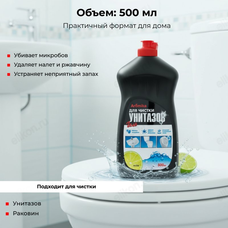 Эффективное средство для чистки раковин и унитазов и удаления загрязнений, известкового налета, ржавчины.