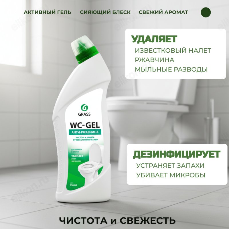 Способствует устранению неприятного запаха, убивает микробы. Гелеобразная структура чистящего средства обеспечивает его экономичный расход.