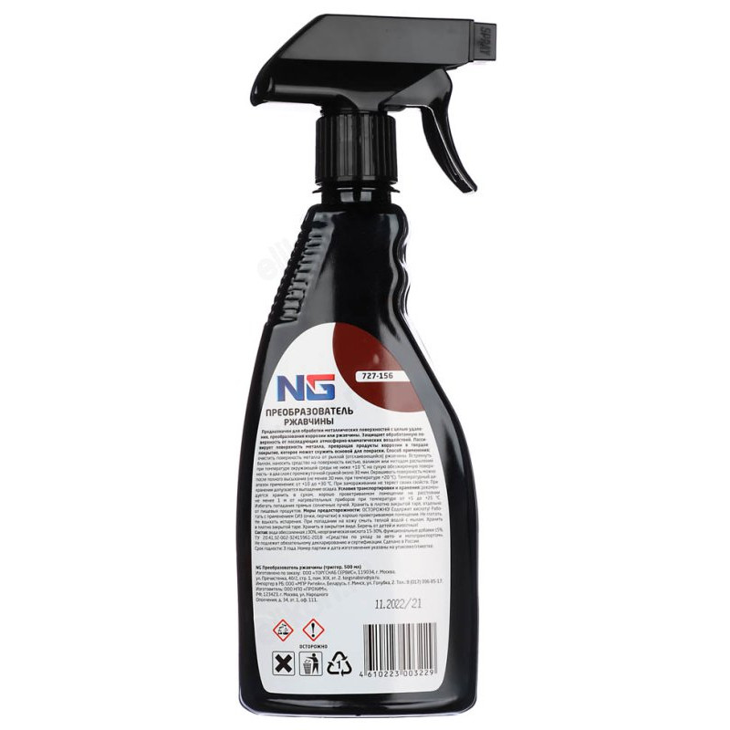 Под влиянием факторов окружающей среды на поврежденных участках кузова автомобиля может появиться ржавчина. Она портит не только внешний вид, но и техническое состояние транспортного средства. Нейтрализовать ржавчину поможет средство для удаления ржавчины NG. Преобразователь ржавчины с цинком для авто NG объемом 500 мл предназначен для удаления, преобразования коррозии или ржавчины на металлических поверхностях. Применяется для обработки металлических поверхностей с целью удаления, преобразования коррозии или ржавчины. Преобразует продукты коррозии и ингибирует процесс коррозии на различных поверхностях. Вступает в реакцию с продуктами ржавчины, модифицирует их и превращает в несущий слой для покраски.