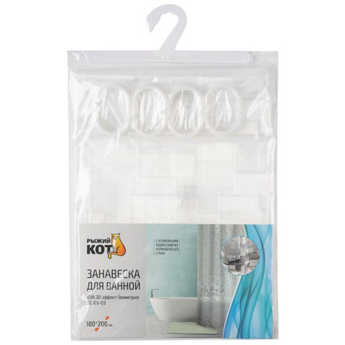 Занавеска для ванной SC-EV-03 EVA 3D эффект Геометрия РЫЖИЙ КОТ 108745