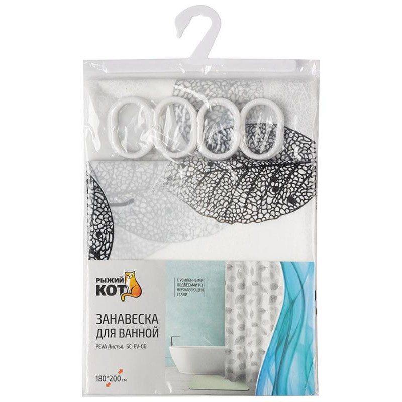Занавеска для ванной SC-EV-06 PEVA Листья РЫЖИЙ КОТ 108748