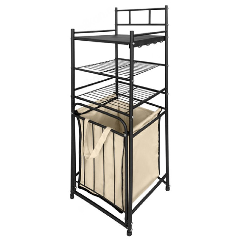 Стеллаж с корзиной для белья СК22 3-х ярусный чёрный