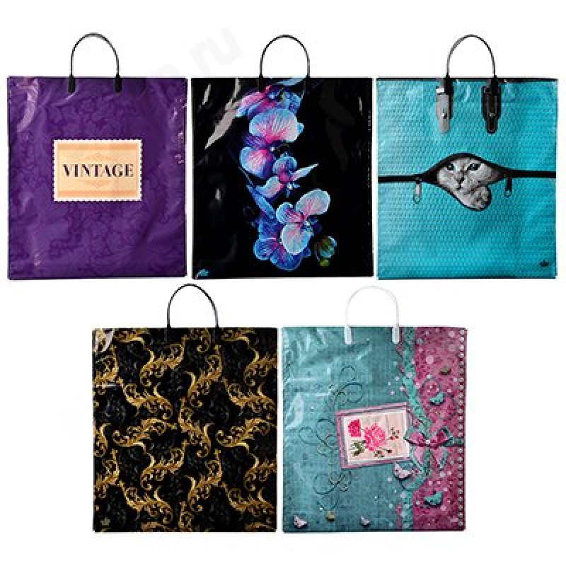 Купить подарочные ПВД пакеты с пластиковыми ручками можно разных дизайнов.