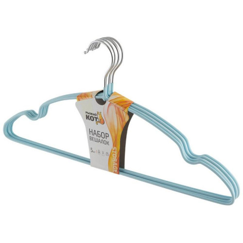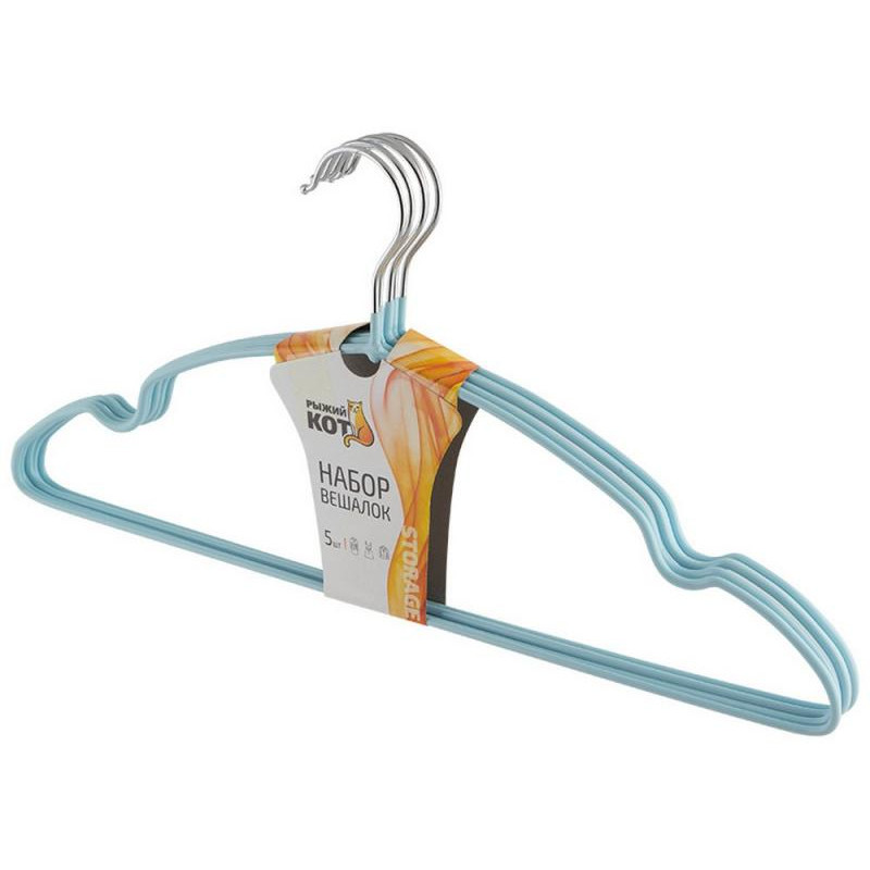 Набор вешалок с ПВХ покрытием 5шт бирюзовый РЫЖИЙ КОТ 006834