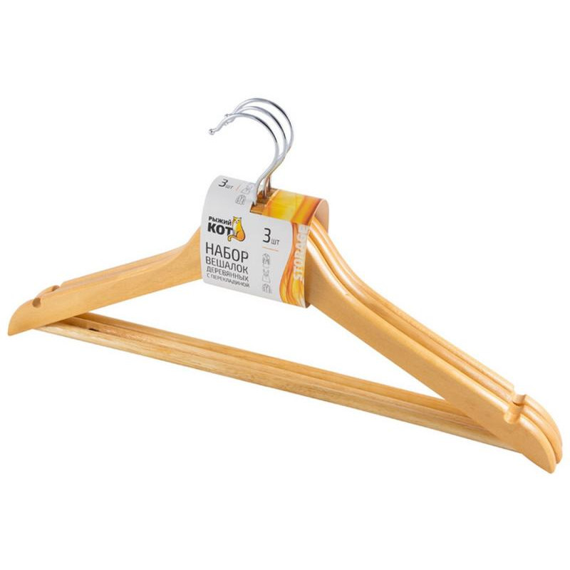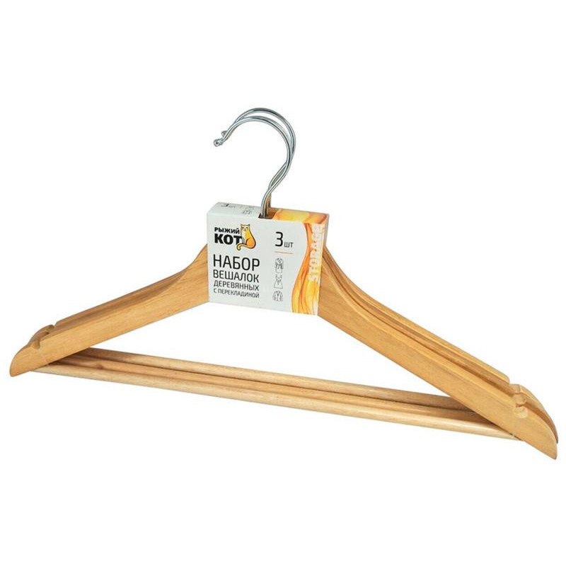 Набор вешалок деревянных с перекладиной светлое дерево (3шт) РЫЖИЙ КОТ 007766
